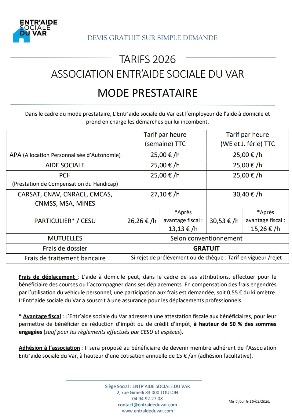 Pour de plus amples informations à propos des services délivrés par l'Entr'Aide Sociale du Var, n'hésitez pas à nous joindre au +33 (0)4 94 92 27 08 ou laisser un message à l'adresse suivante contact@entraideduvar.com ou ici.